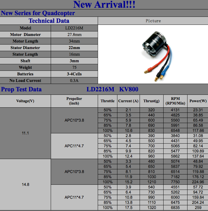 -> LD2216M (800KV) High Performance Multicopter Motor